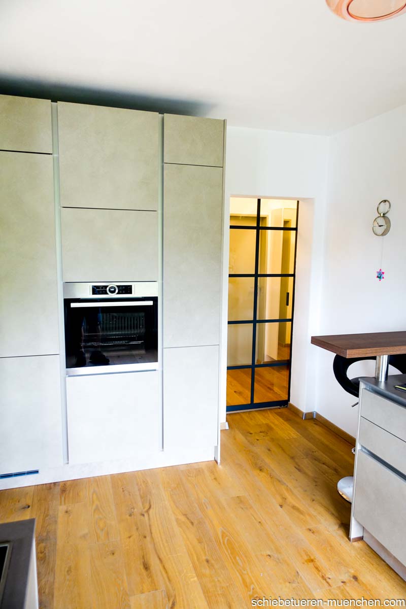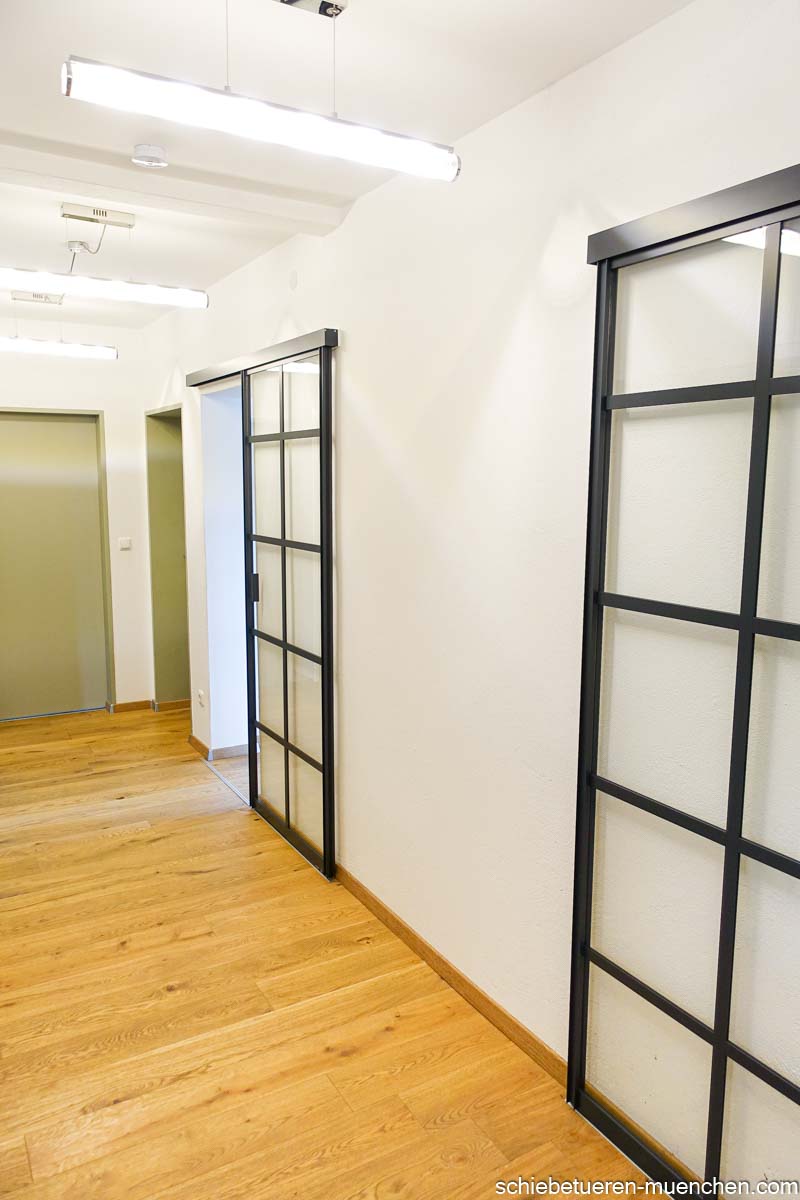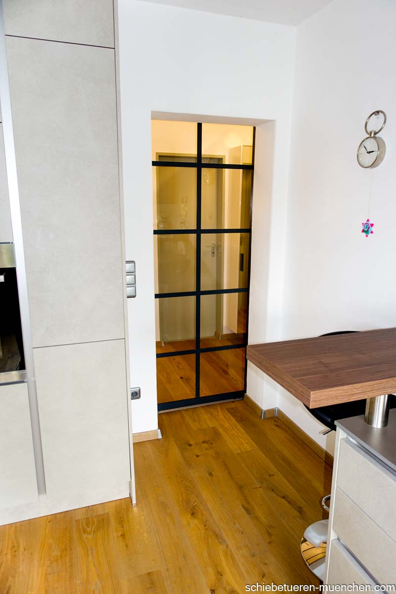 Loft-Schiebetür mit 5 Sprossen – 1-flügelig, schwarz, VSG 6 mm klar