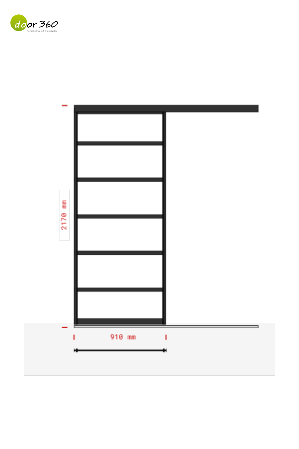 Diese 1-flügelige Loft-Schiebetür mit fünf aufgesetzten Dekorsprossen und klarer VSG 6 mm-Füllung ist die ideale Lösung für moderne Durchgänge im Industrial Design. Die Tür überzeugt durch klare Linien, stabile Technik und eine einfache Wandmontage. Der schwarz pulverbeschichtete Aluminiumrahmen (RAL 9005) und die aufgesetzte Laufschiene machen sie zu einem stilvollen Raumtrenner.