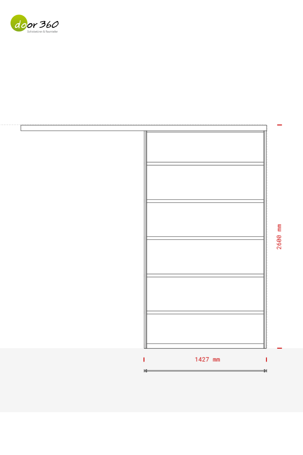 - Maße (fest): Gesamtbreite ca. 1.400 mm × Höhe 2.600 mm × Tiefe 46 mm